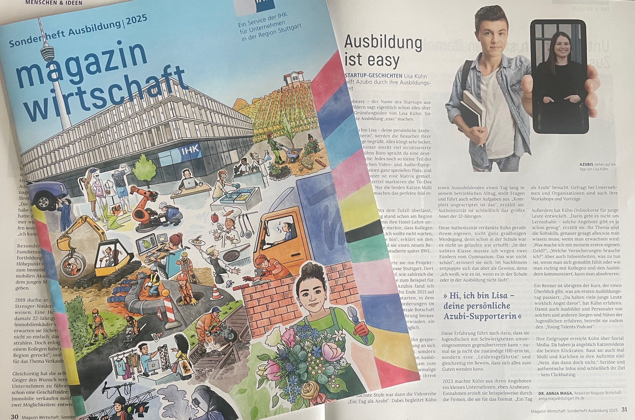 Portrait über AZUBeasy und Lisa Kühn in dem Sondermagazin 'Ausbildung' der IHK Stuttgart